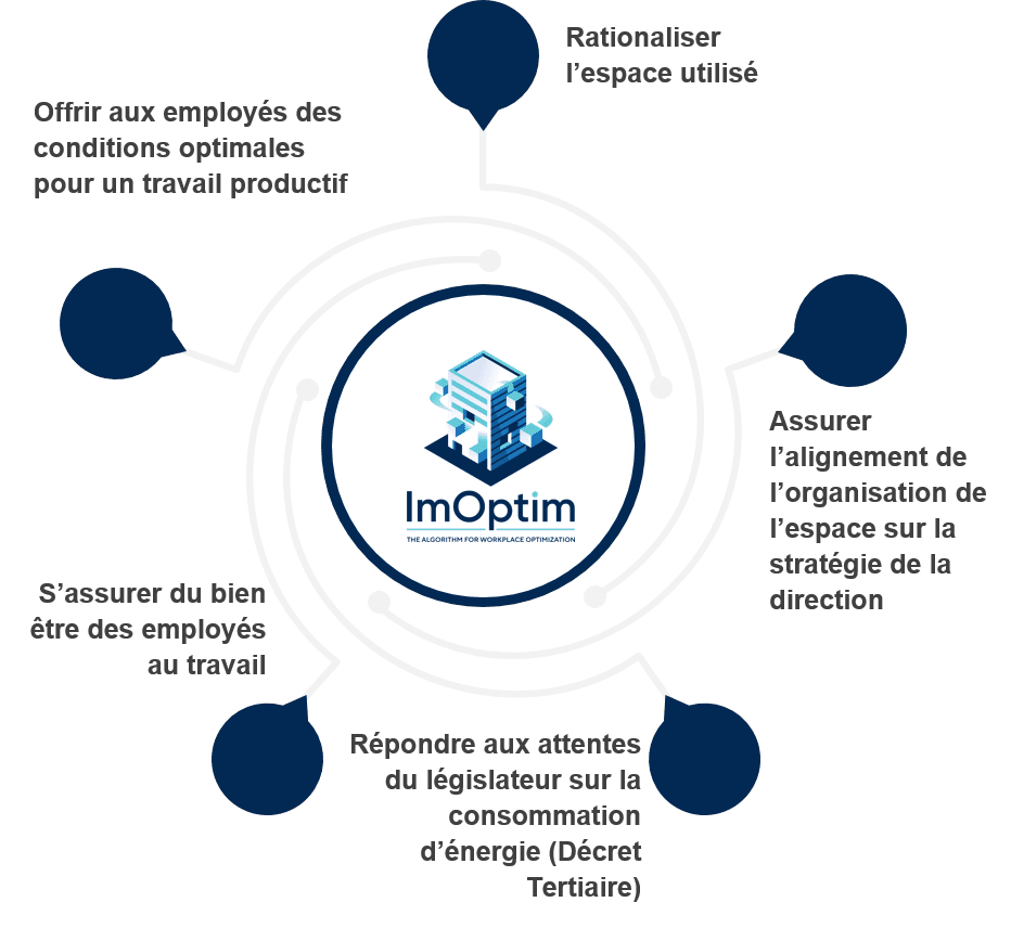 R : Absolument. ImOptim est capable de gérer et d'optimiser les plans de placement dans divers sites de bureaux, assurant une productivité et une efficacité constantes à travers votre organisation.