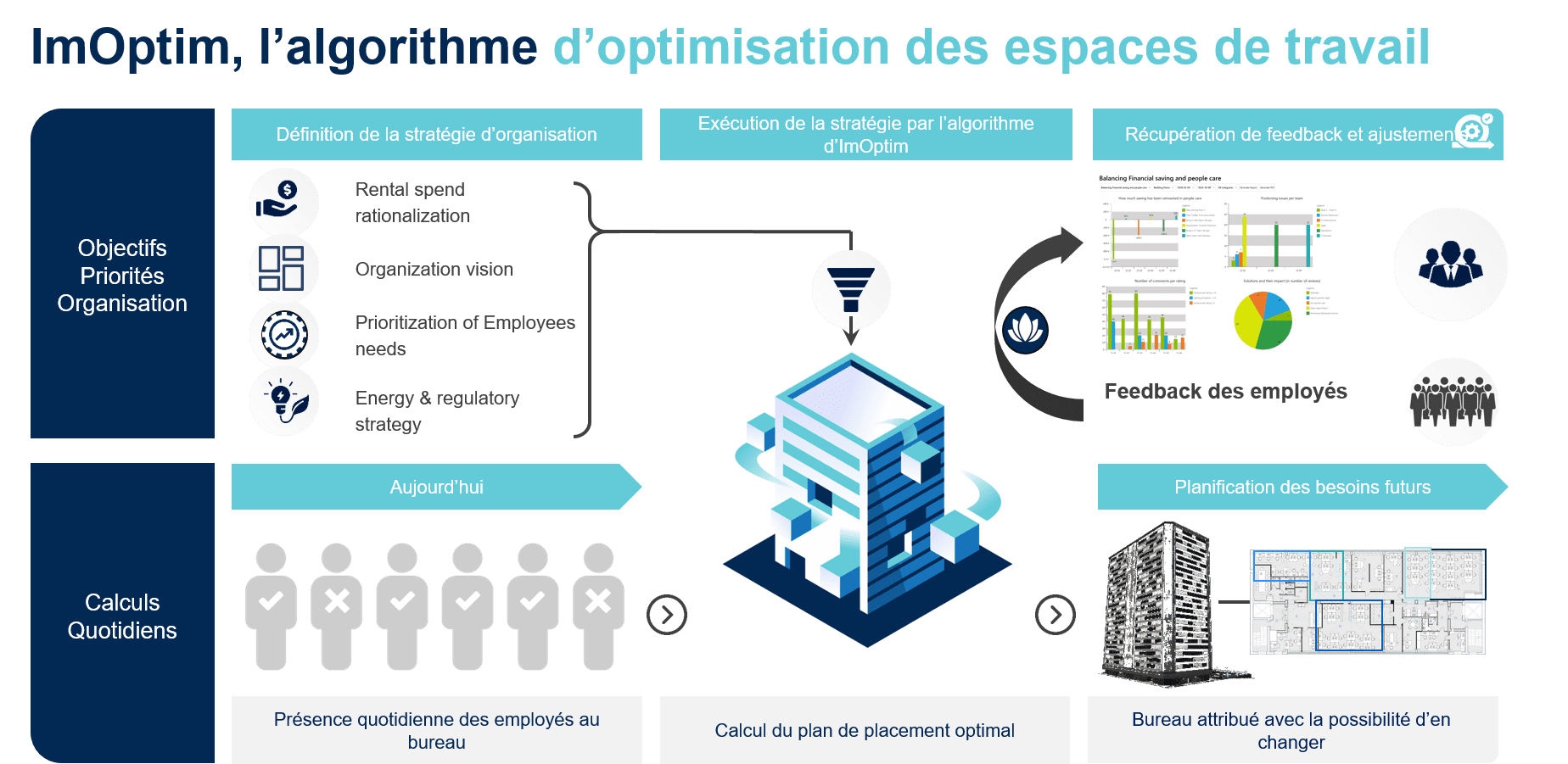ImOptim s'adapte au plan de placement défini par la direction, effectuant des ajustements seulement lorsque cela est nécessaire, tout en préservant intacte la vision de l'entreprise.